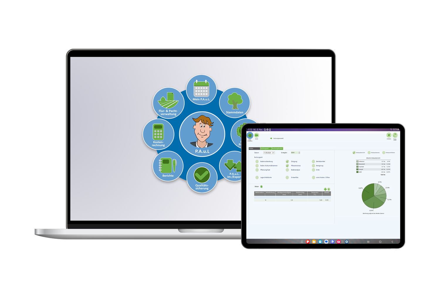 P.A.u.L. – „Das Programm für Agrarwirtschaft und Liegenschaftsverwaltung“ ist die praxisorientierte Schlagkartei für den Obst-, Gemüse- und Ackerbau. Auch im Weinbau, in Baumschulen und im Zierpflanzenbereich ist P.A.u.L. Ihr zuverlässiger Assistent. Die Software hilft Ihnen, alle Maßnahmen vom Anbau bis zur Ernte lückenlos, zeitsparend und rechtssicher zu dokumentieren – für eine wirklich einfache Schlagdokumentation statt unnötigem Papierkram.